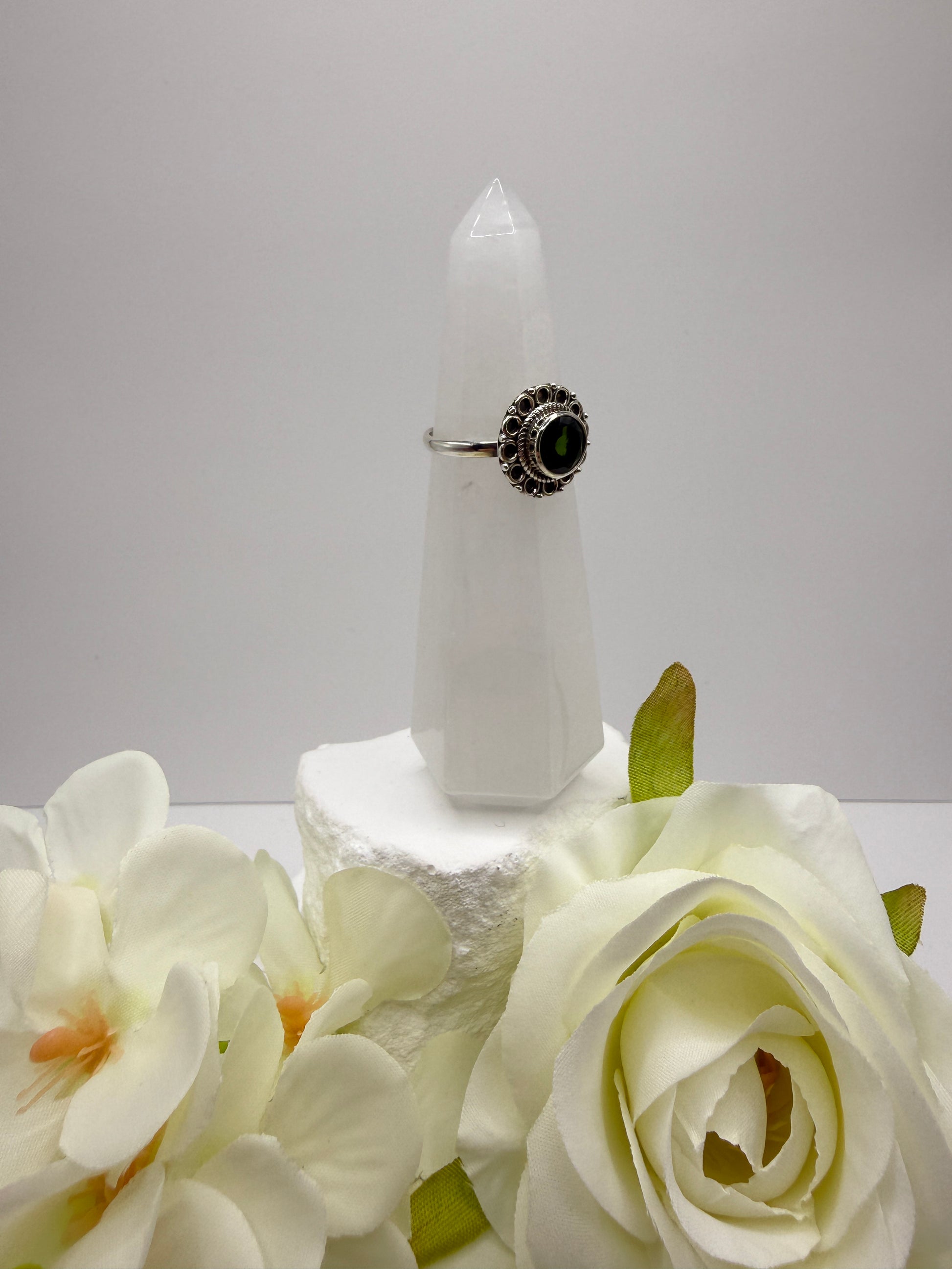 Green Diopside size 7 sterling silveri